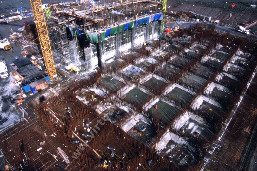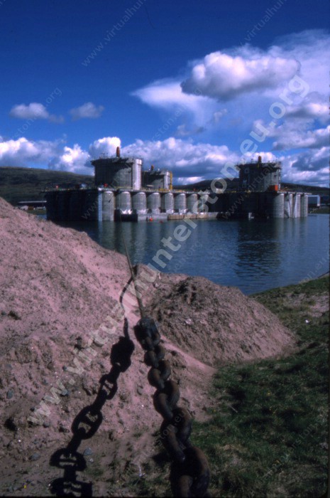 The construction yard at Hunterston was used for the final time between 1993 and 1996 when a Gravity Base Tank was built shortly after the Submarine Dry Dock was completed and floated out. The hole in the sea wall was rebuilt and work started on the tank.